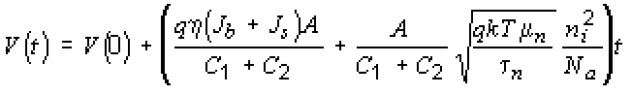 Решение уравнения (10) при условии, что в момент времени t = 0 напряжение на р-n-переходе было равно V(0), примет вид