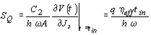 В рассматриваемой фокальной матрице сигнальным зарядом является заряд QС2 на конденсаторе C2, равный C2 V(t). Для простоты будем считать, что падающее излучение монохроматическое, т. е. Ps = hwAхs . Тогда из (11) получим: