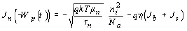 Известно [33], что для стационарного случая плотность электронного тока на границе ОПЗ р-n-перехода и квазинейтральной области р-типа хn(- Wp(t)можно записать в виде