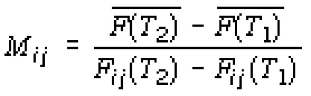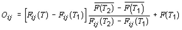 Теория линейных преобразований дает корректный рецепт пересчета неоднородного поля Fij(Т(Т) в однородное (Оij(Т)) без потери информационной емкости исходного поля. Для этого необходимо измерить массивы значений Fij(Т) при двух температурах Т1 и Т2 и затем пересчитать значения фотосигналов Fij(Т) при произвольной температуре Т по следующей формуле: