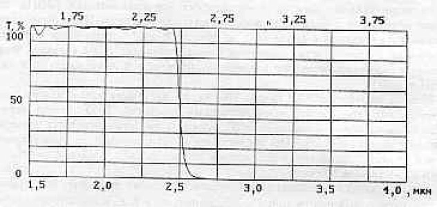 Рис. 3. Спектральное пропускание отрезающего фильтра на входном окне